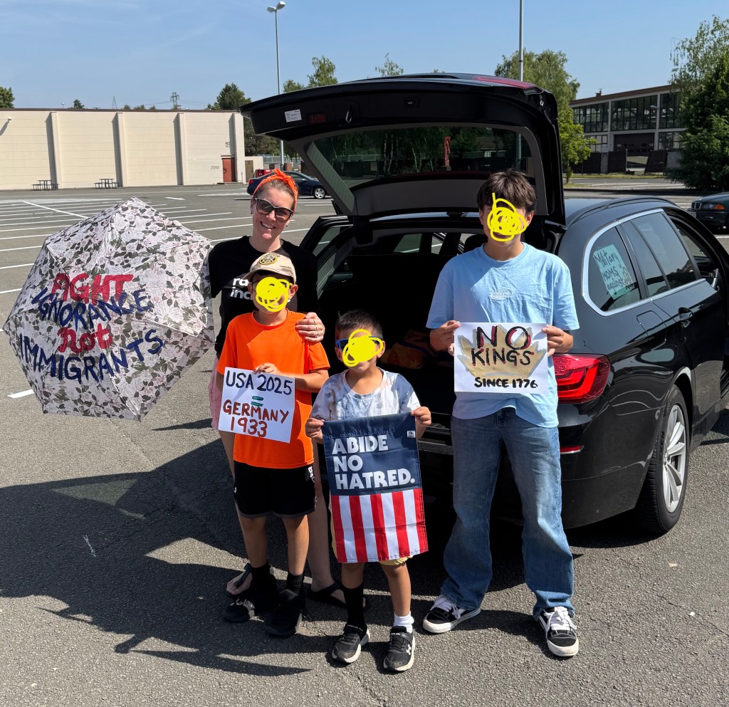 Today, I took my sons to the No Kings Protest in Frankfurt, Germany. I wanted them to feel like they had the opportunity to witness and share the energy of those brave enough to speak up. “If the world is going to go down, I will go down swinging and screaming.” When you stand firm and speak with one voice against tyranny—be it systemic injustice, bullying, discrimination, or any abuse of power—you show your children what it means to live with integrity.